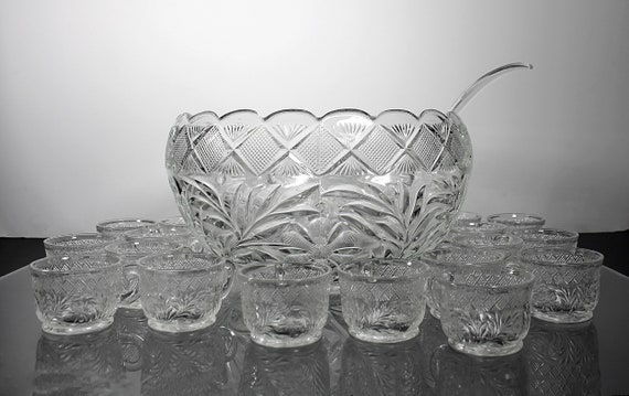 Punch Bowl With 18 Cup Smith Glass Holiday 6 Quart Plastic Etsy Uk