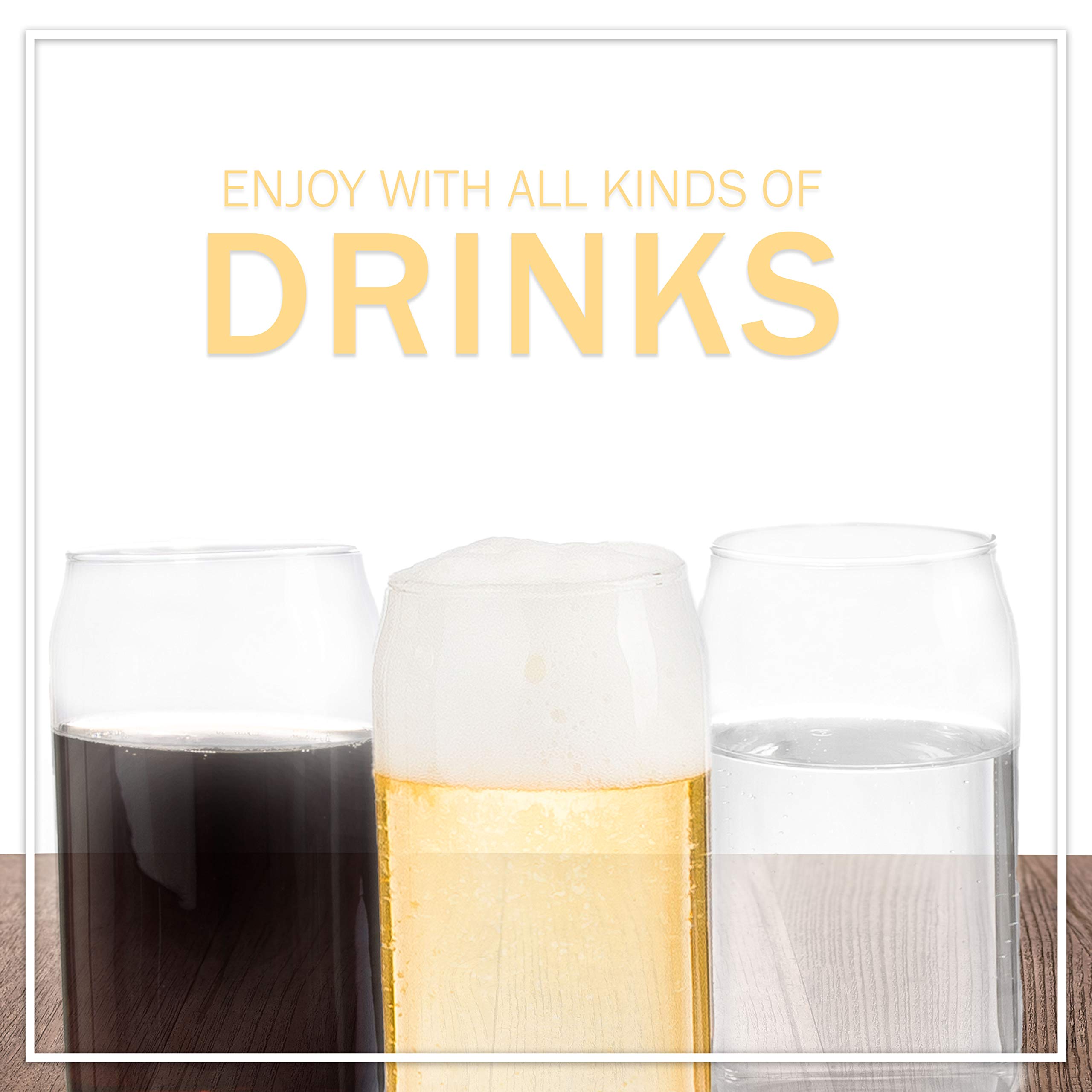 Amazon Com Jucoan 4 Pack 18 Oz Can Shaped Beer Glass Premium Handmade Clear Drinking Glass Cups With 4 Reusable Glass Straws For Water Wine Beer Cocktails And Mixed Drinks Mixed Drinkware Sets
