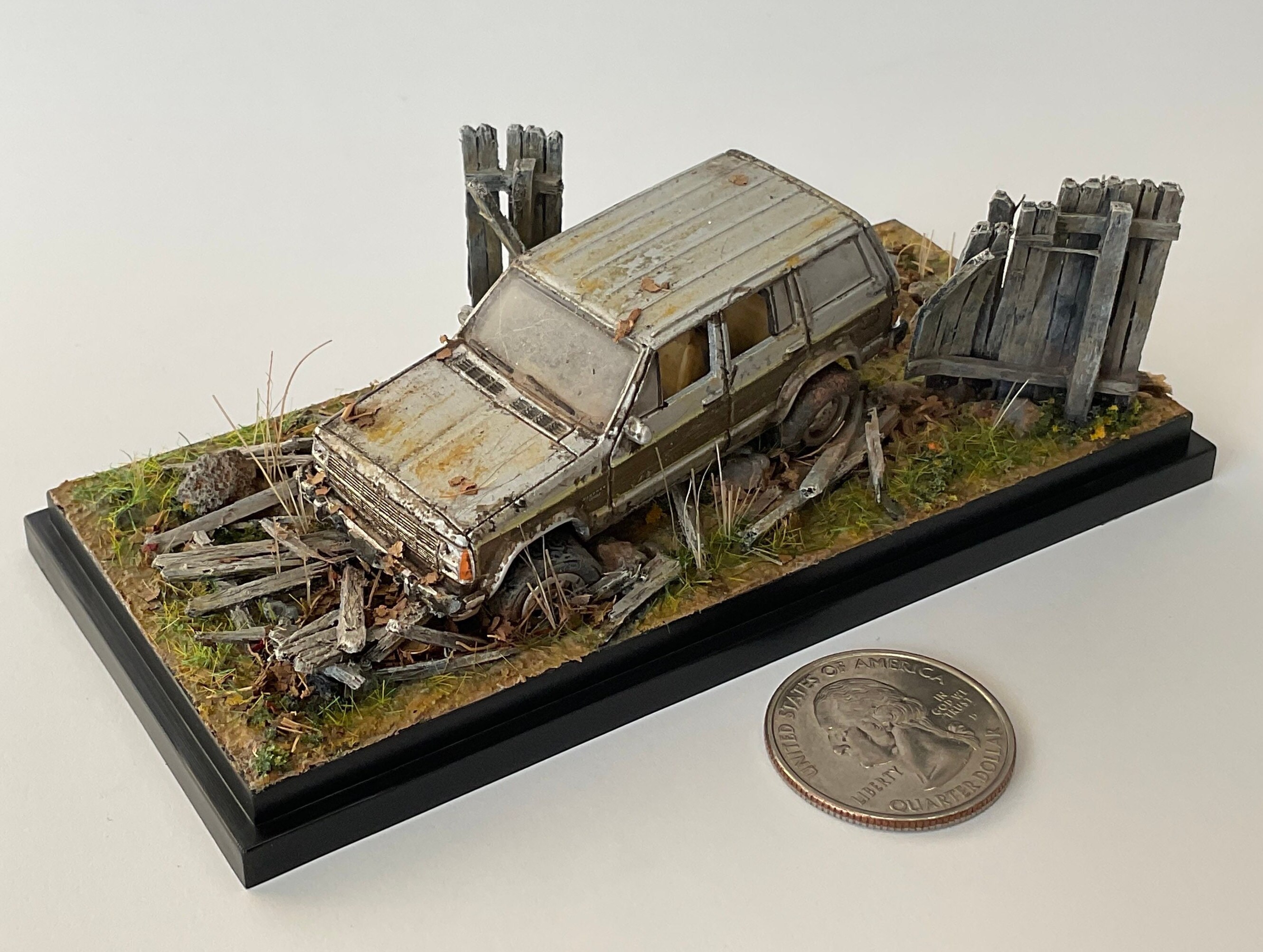 Jeep Cherokee 1 64 Crashed Through Fence Diorama With Display Etsy Uk